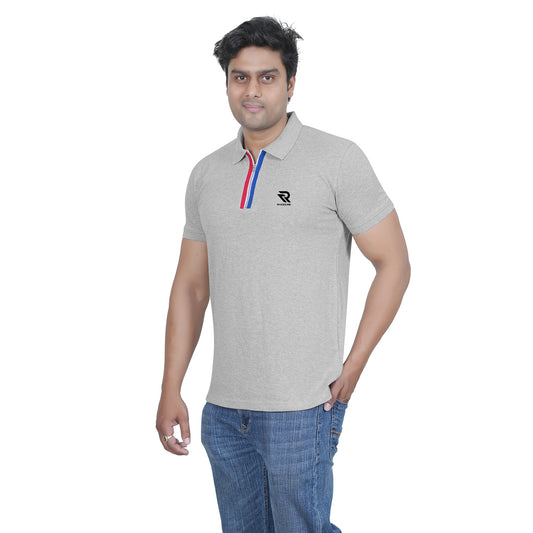 Grey Polo T-shirt with Tricolour Placket - Raciouse Edition